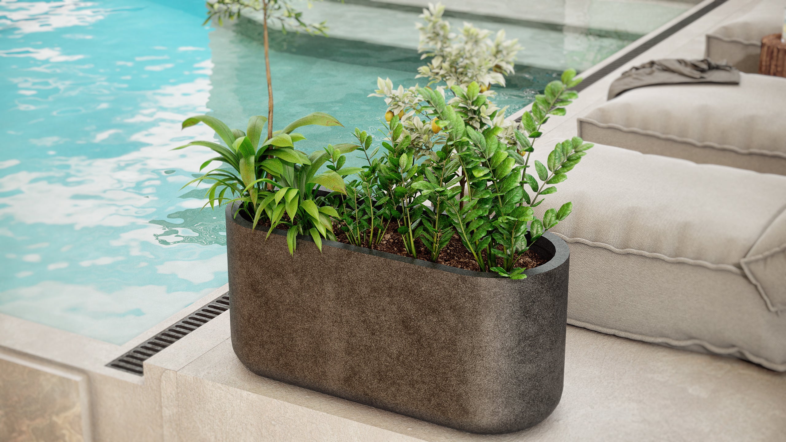 FRANKLIN Beton Saksı Serisi: Modern Mekanlar için Fonksiyonel Şıklık: S, M, L, XL ve 2XL boy seçenekleriyle sunulan FRANKLIN, dikdörtgen formu ve modern çizgileriyle özellikle geniş ve uzun alanlar için tasarlandı. İç mekan saksı ve dış mekan saksı kullanımı için ideal olan FRANKLIN, büyük ölçüleri sayesinde büyük boy saksı ve dış mekan büyük beton saksı ihtiyacına mükemmel bir çözüm sunuyor. Hafif beton malzemesi ile hem dayanıklı hem de kolay taşınabilir yapıya sahiptir. İstenirse drenaj deliği açılabilir, böylece bitkileriniz sağlıklı bir büyüme ortamı bulur. Taş saksı görünümü ve geniş formu sayesinde FRANKLIN, bahçelerde, teraslarda, otel girişlerinde ve kapalı balkonlarda şık bir bölücü veya seperatör saksı olarak da kullanılabilir. FRANKLIN ile mekanlarınıza güçlü ve modern bir duruş kazandırın.