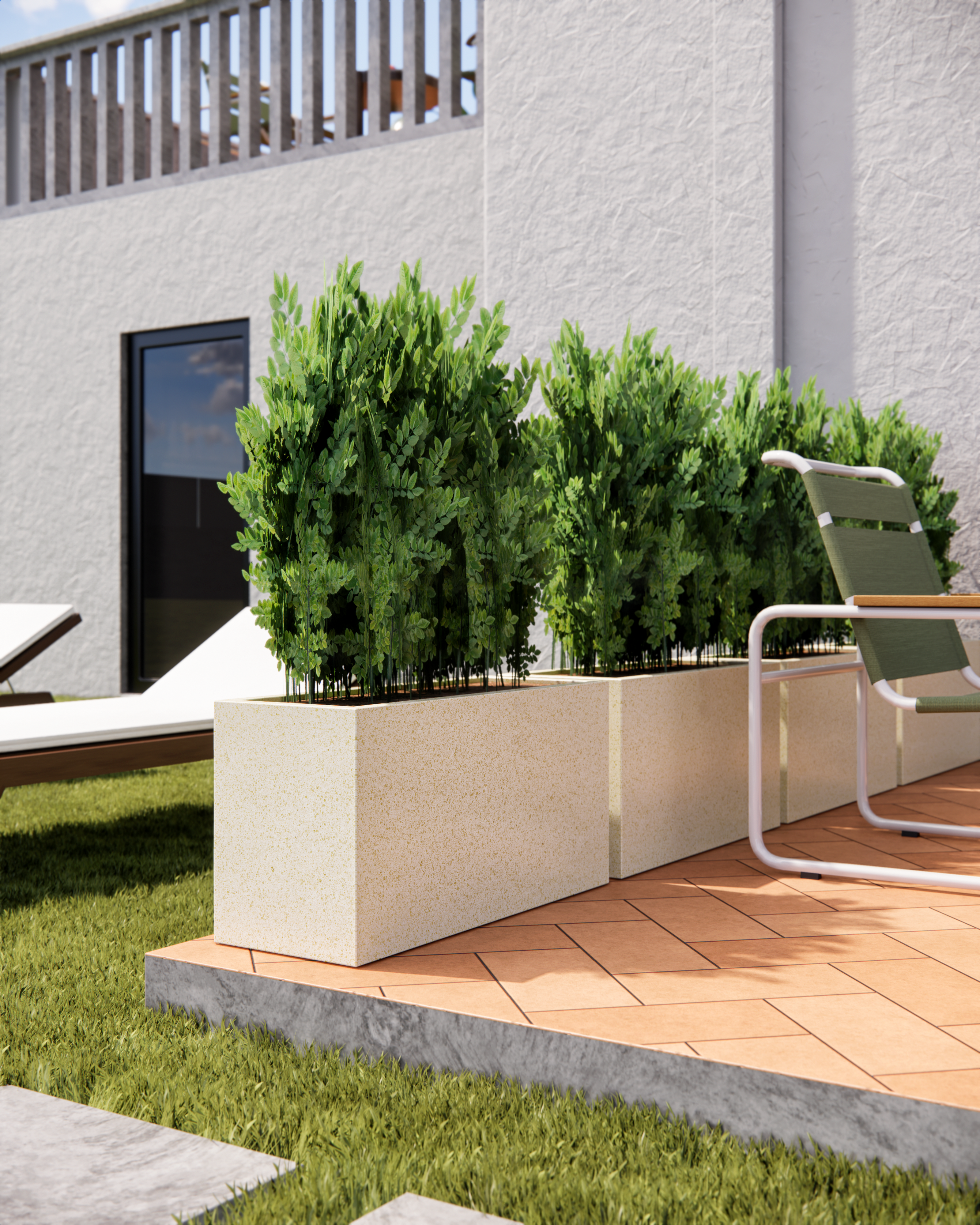 LVY Beton Saksı Serisi: Fonksiyonel Minimalizmin Güçlü Yorumu: S, M, L ve XL boy seçenekleriyle sunulan LVY, dikdörtgen formu ve sade çizgileriyle hem modern hem işlevsel bir çözüm sunuyor. İç mekan saksı ve dış mekan saksı kullanımına uygun olan LVY, özellikle uzun alanlarda bitkileri zarif bir şekilde sergilemek için ideal. Hafif beton malzemesi sayesinde hem taşınması kolay hem de uzun ömürlüdür. İstenirse drenaj deliği açılabilir; böylece bitkilerinizin sağlıklı gelişimi desteklenir. Taş saksı görünümündeki dokusu ve sade tasarımı sayesinde LVY, bahçelerden teraslara, balkonlardan otel girişlerine kadar pek çok alanda güçlü bir şıklık yaratır. LVY ile mekanlarınıza minimal ve etkileyici bir düzen kazandırın.