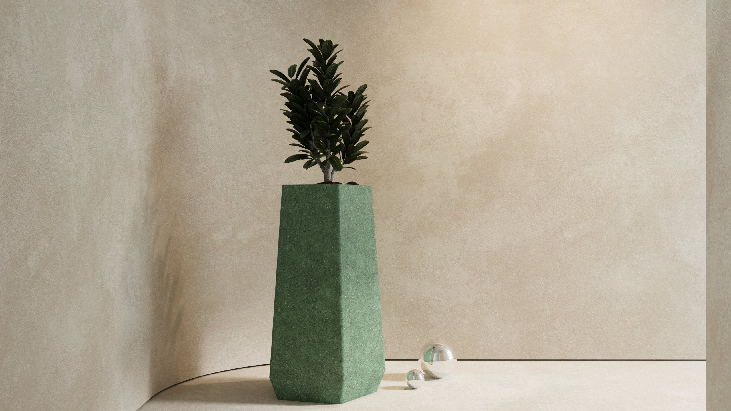 Taş saksı görünümündeki yüzeyiyle RIKU, bahçe girişlerinden otel lobilerine, teraslardan kapalı balkonlara kadar geniş kullanım alanı sunar. Yüksek ve heybetli yapısıyla, dekorasyona cesur bir dokunuş katar. RIKU ile mekanlarınıza modern ve güçlü bir silüet kazandırın.